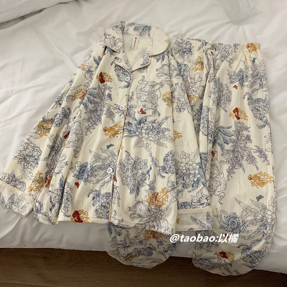 Пижама женская с длинным рукавом, хлопковая повседневная одежда для сна, корейский домашний кардиган, костюм на весну и осень