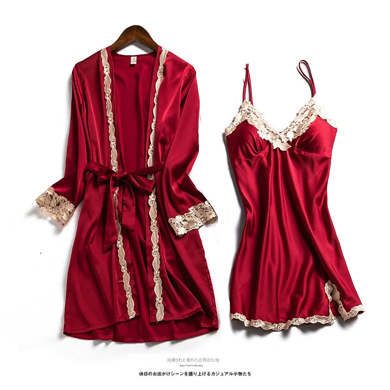 Пижама женская с V-образным вырезом, белый атласный кружевной комплект, ночная рубашка, нижнее белье
