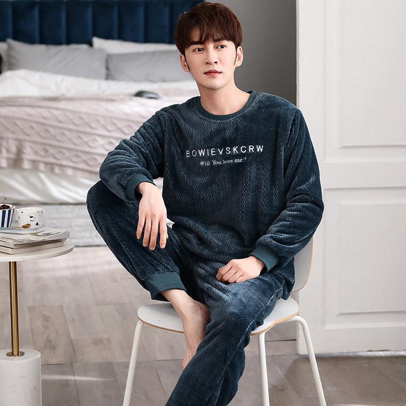 Пижама из кораллового флиса мужская осенне-зимняя утолщенная флисовая теплая мужская фланелевая домашняя одежда зимний костюм большого размера 3XL