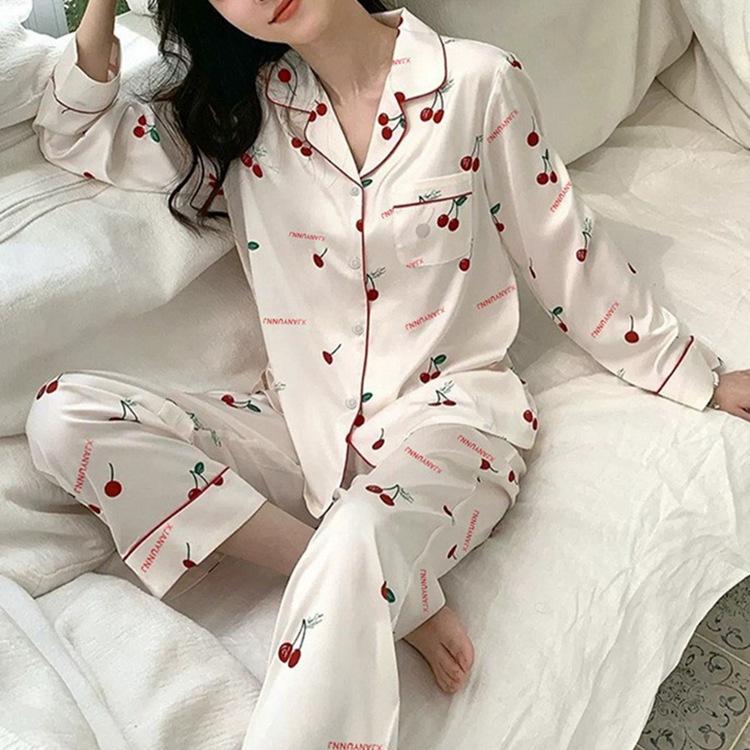 Пижама из ледяного шелка женская с длинным рукавом кружевная премиум-класса Sense из двух частей милая домашняя одежда XXL белый
