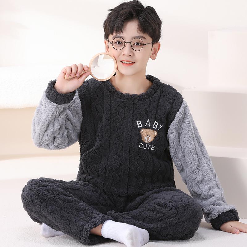«Пижама из плотного плюша кораллового флиса для мальчиков на осень и зиму — фланелевая домашняя одежда для детей» Size 18 (Height 145-155cm)