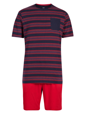 Пижама из чистого хлопка: футболка в широкую полоску и однотонные шорты