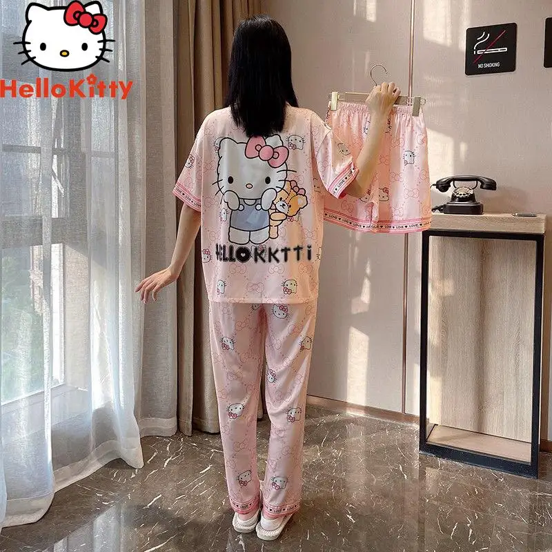 Пижама Y2K Hello Kittys женская летняя Sanrios спортивный костюм с коротким рукавом из аниме милый мультяшный костюм из ледяного шелка можно носить на...