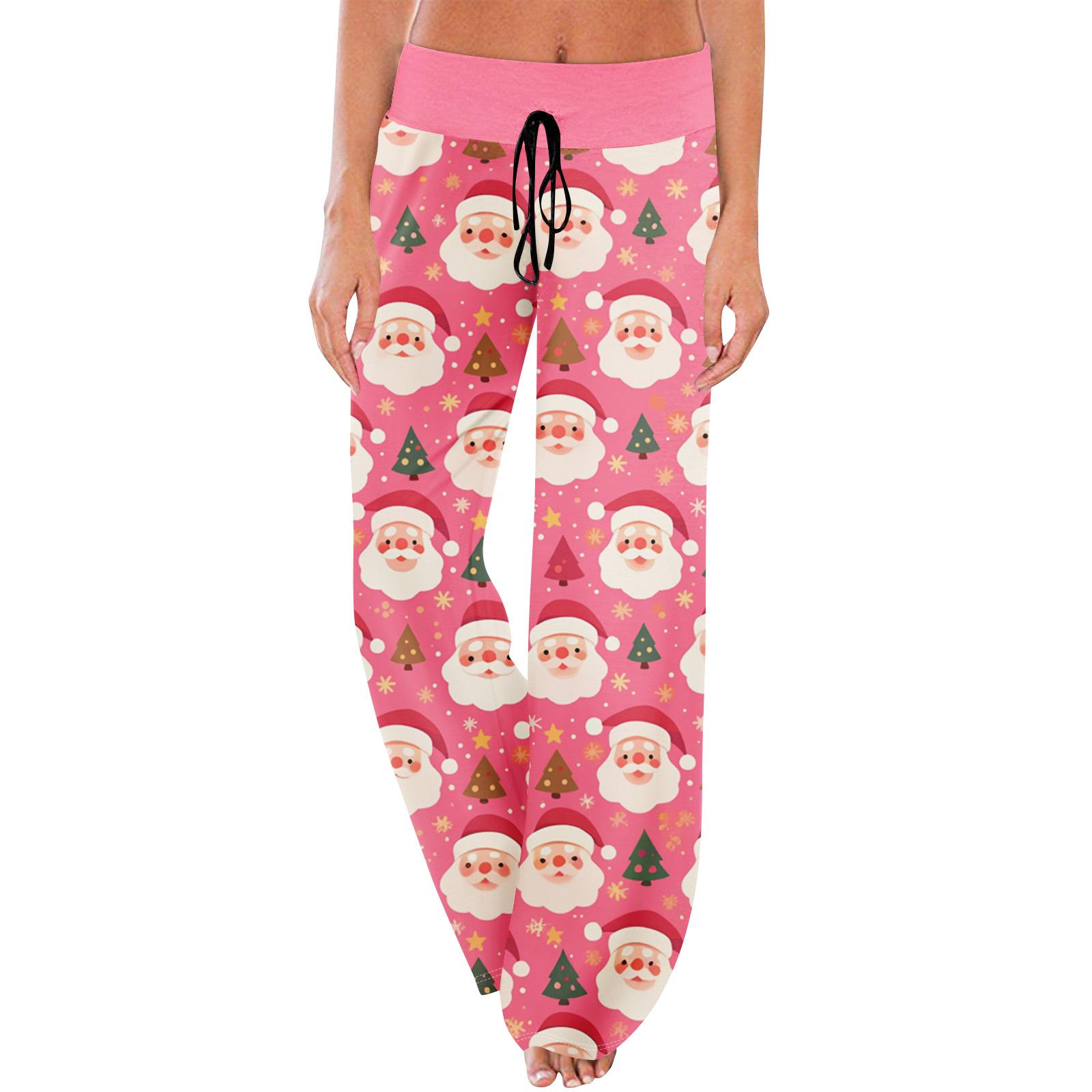 Пижамные брюки Домашняя одежда Повседневные Брюки на кулиске с эластичной талией Удобные Прямые Брюки для йоги Свободные L розовый