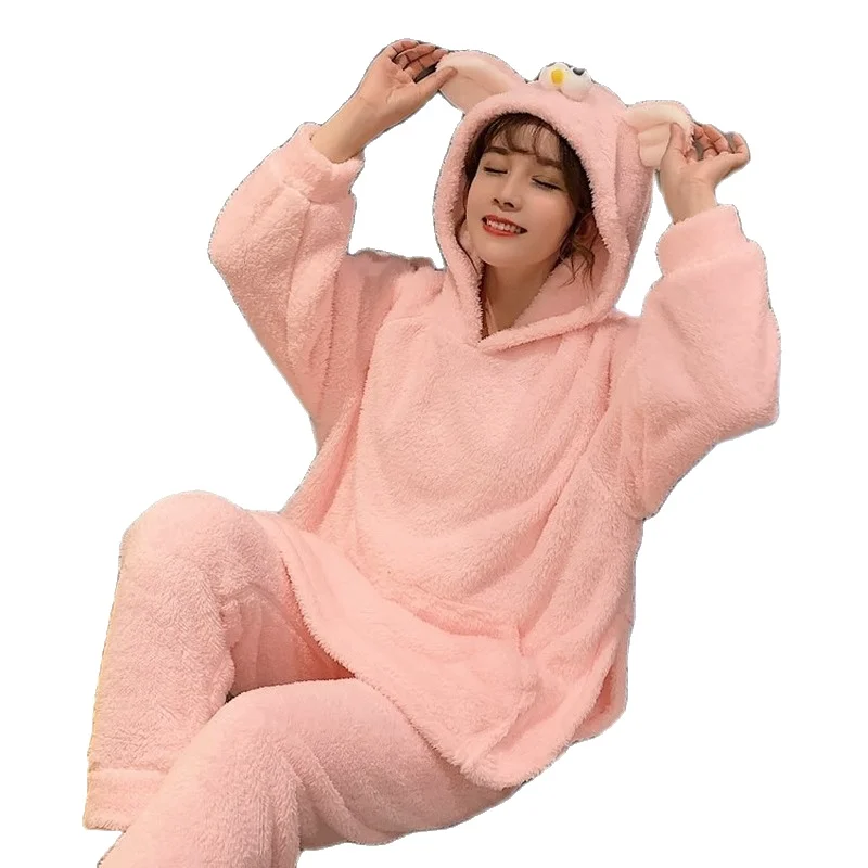 Пижамный комплект для девочек, Коралловая бархатная одежда для сна, пижамы с капюшоном и карманом, Женская плотная теплая Милая Домашняя од...