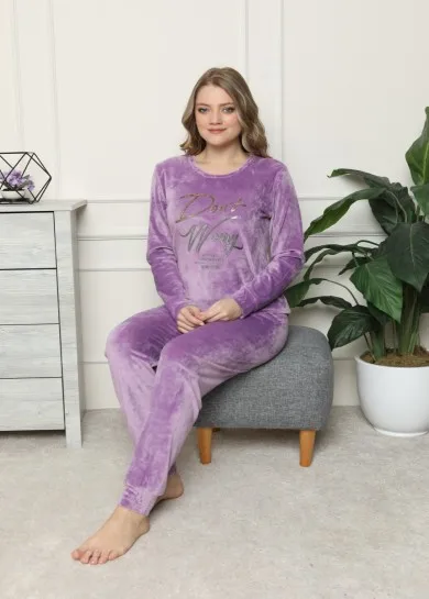 Пижамный комплект женский зимний с бархатным узором и надписью, 3 разных цвета