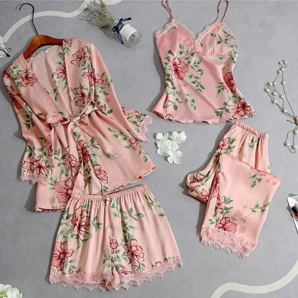 Пижамный комплект женский из мягкой дышащей ткани с цветным цветочным принтом, 5 шт./компл.