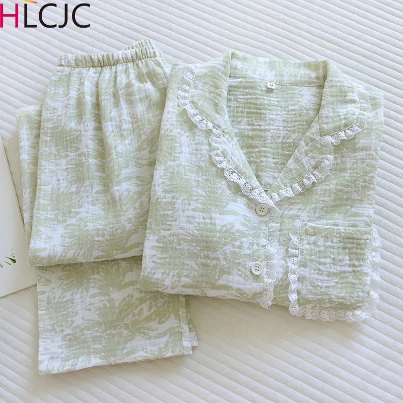 Пижамный комплект женский кружевной из крепа и хлопка, Свободный кардиган с принтом, корейский стиль, одежда для сна, весна-лето 2023