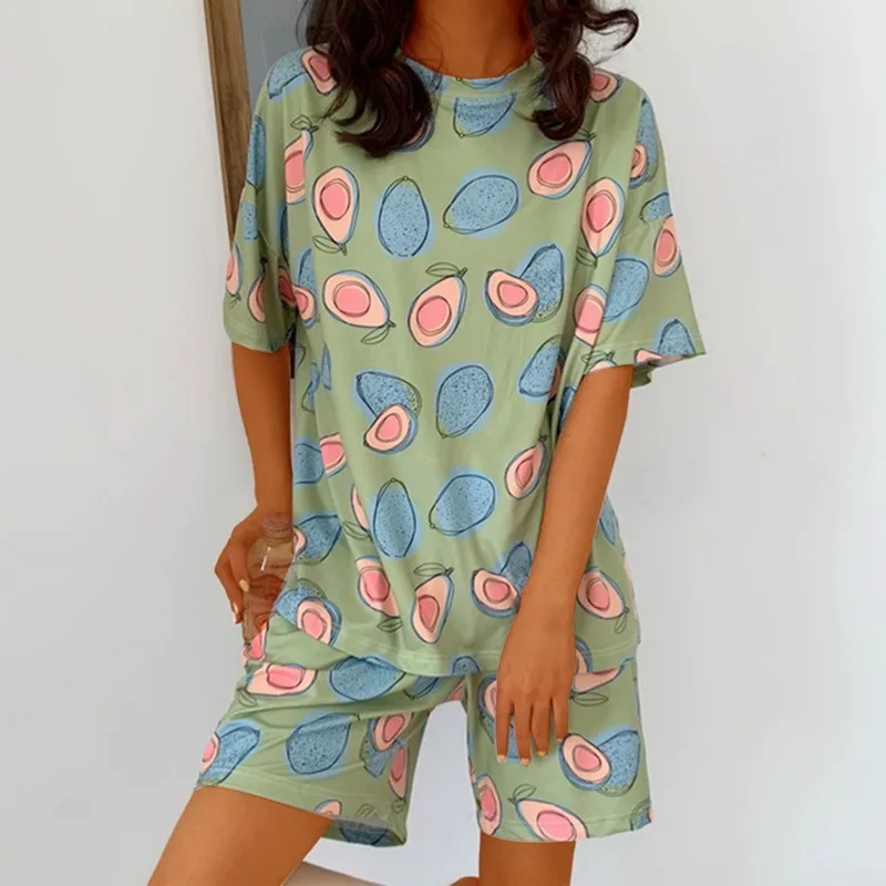 Пижамный комплект женский летний, Свободная Домашняя одежда в Корейском стиле, с милым принтом, милая Повседневная Мягкая женская одежда дл...