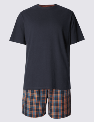 Пижамный комплект из чистого хлопка: футболка с коротким рукавом и шорты в клетку