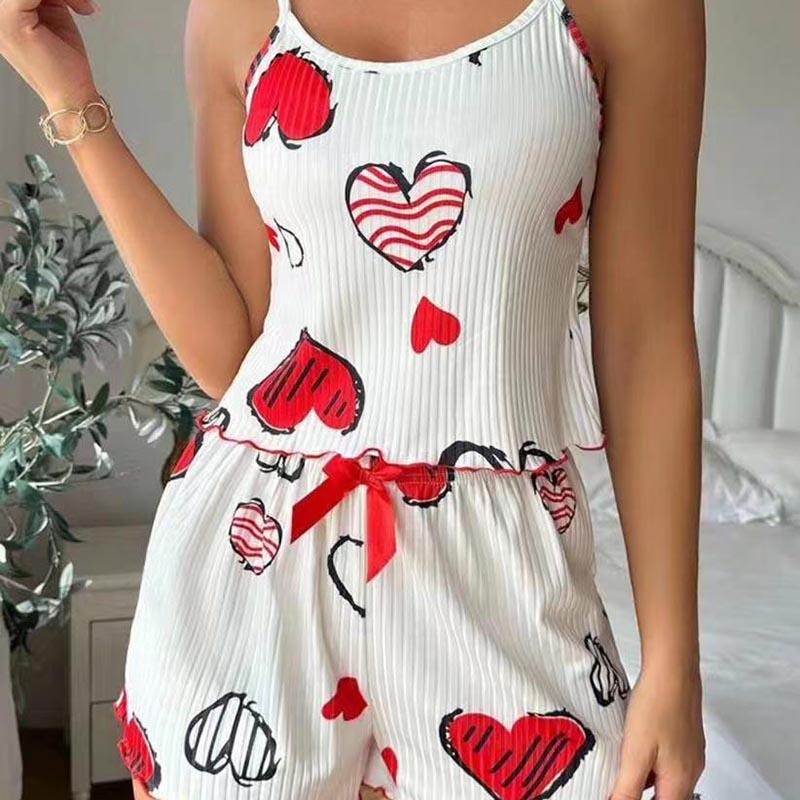 Пижамный комплект из 2 предметов, женская пижама, майка с принтом «сердце и любовь», повседневные майки и шорты, мягкая вентилируемая одежда для дома M