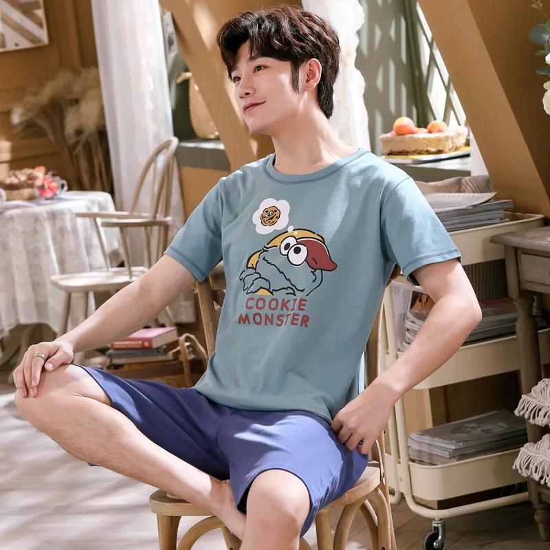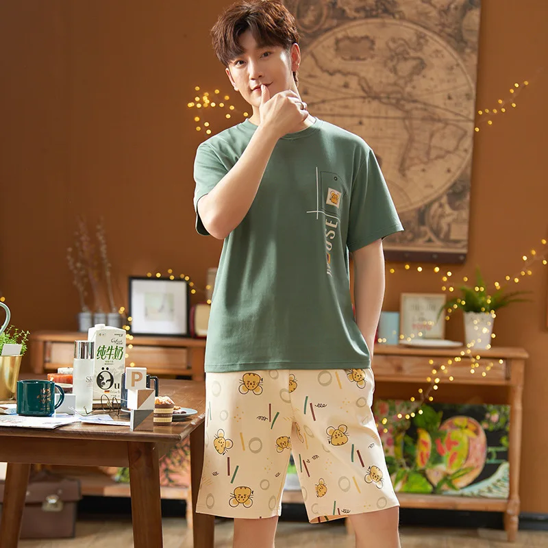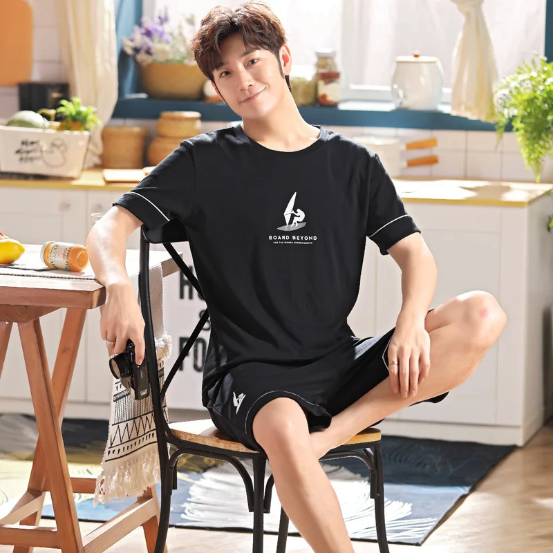 Пижамный комплект мужской, с коротким рукавом и круглым вырезом, в Корейском стиле, на лето, размера плюс, L-3XL