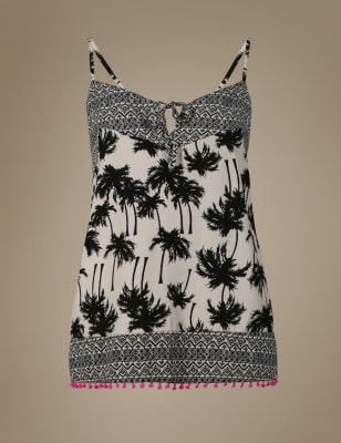 Пижамный топ-камисоль с монохромным тропическим принтом, Черный микс