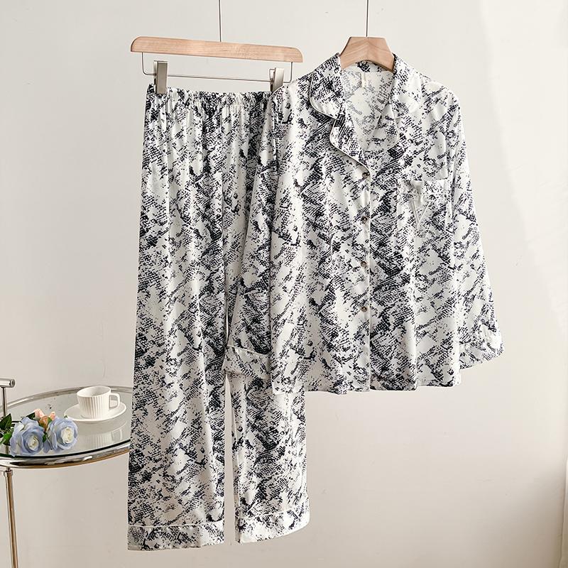 Пижамы с цветочным принтом, женские пижамы, весенние и летние шелковые атласные брючные костюмы, пижамы, повседневная одежда, свободная домашняя одежда L белый