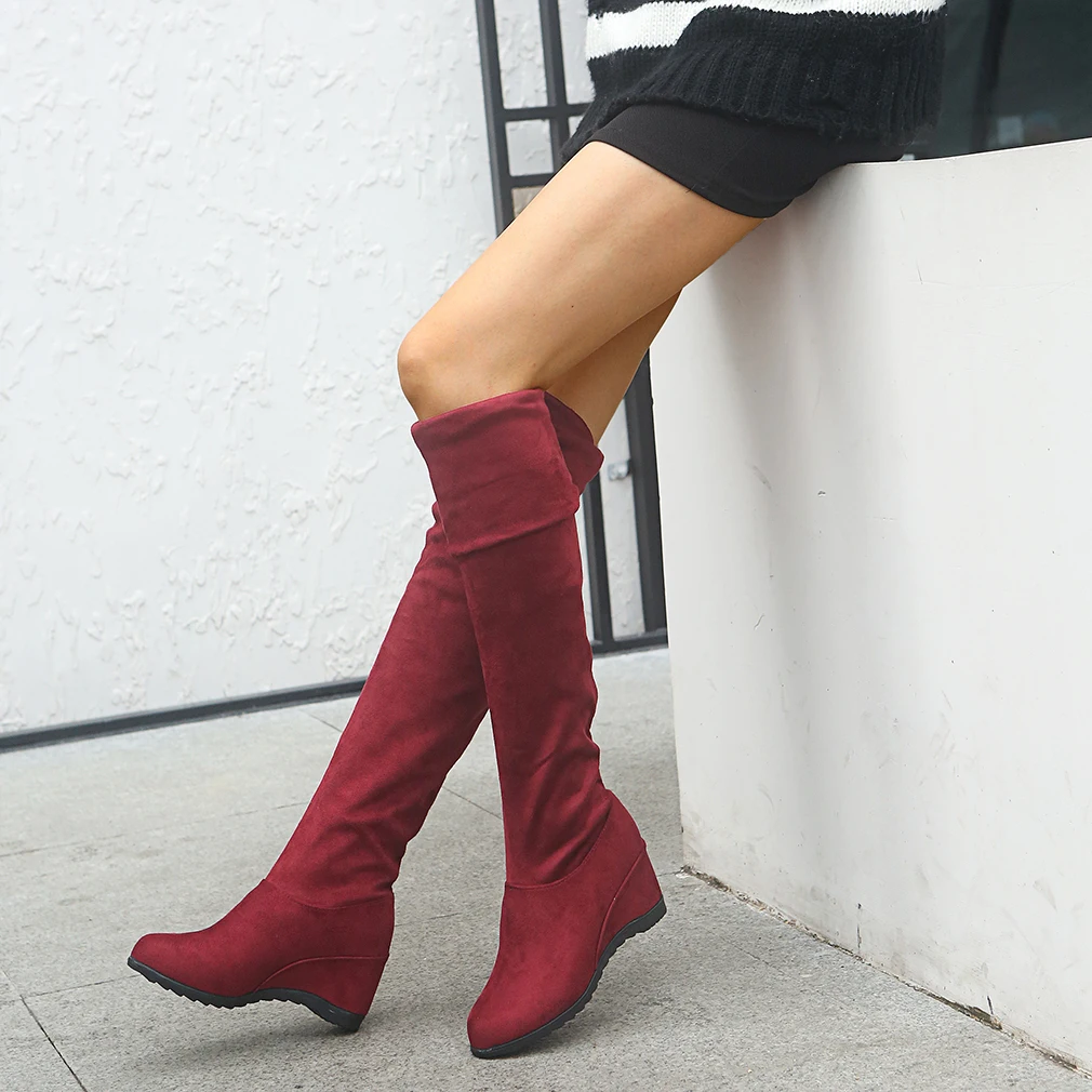 Пикантные Женские Сапоги выше колена, женская зимняя обувь, женские модные замшевые сапоги на шнуровке и высоком каблуке, сапоги до бедра, 41 ...