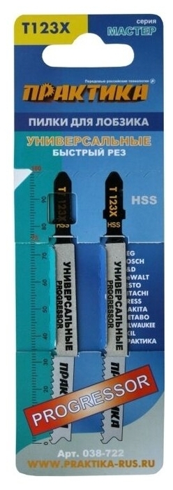 Пилка для лобзика Практика T123X L10 см x 7.5 см, грубый, универсальные, 2 шт. (038-722), T123X