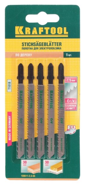 Пилка для лобзика Kraftool 159511-2.5-S5 L7.5 см, чистый, ДВП, дерево, ДСП, 5 шт. (159511-2.5-S5), 159511-2.5-S5
