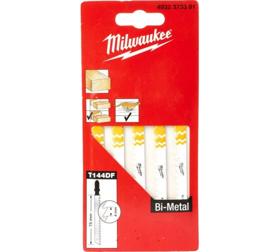 Пилка для лобзика Milwaukee T144DF L100ммx75мм, быстрый рез, по дереву, 5шт. (4932373391), T144DF