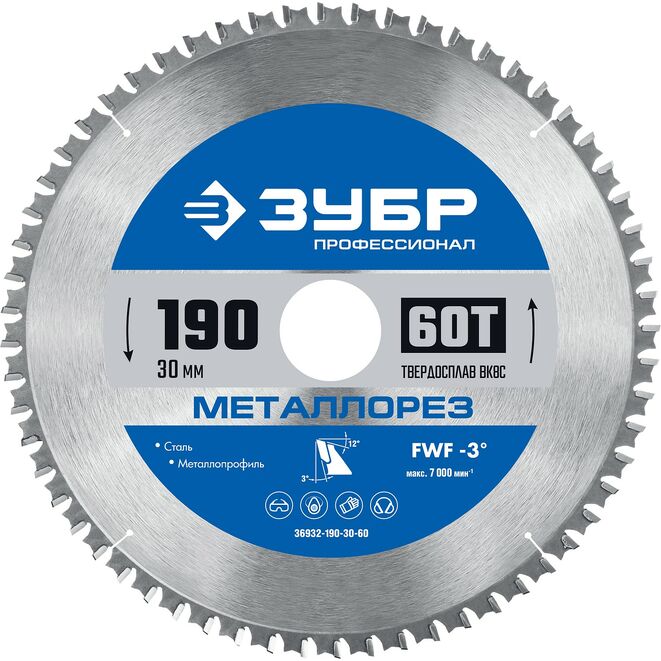 Пильный диск ЗУБР Металлорез, ⌀190 мм x 30 мм по металлу, 60T, 1 шт. (36932-190-30-60)