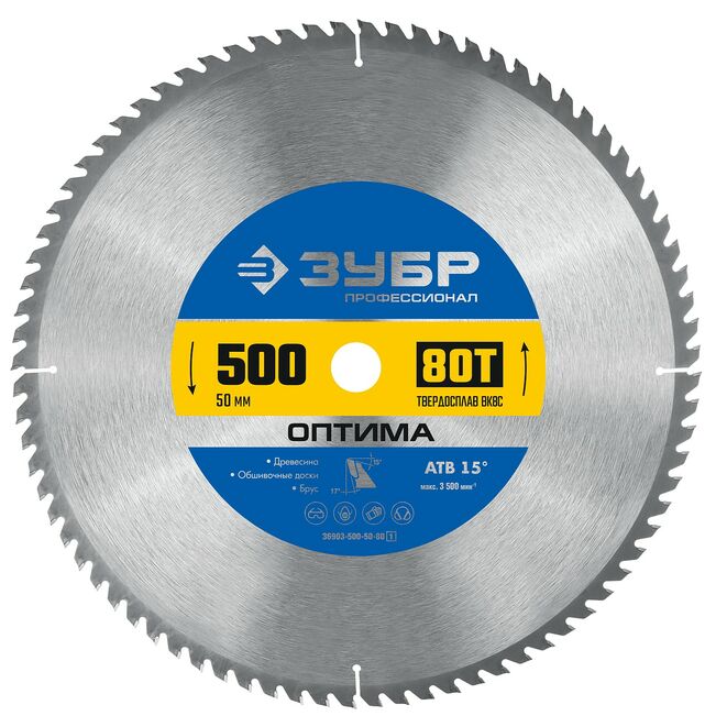Пильный диск ЗУБР Оптима, ⌀500 мм x 50 мм по дереву, 80T, 1 шт. (36903-500-50-80_z01)