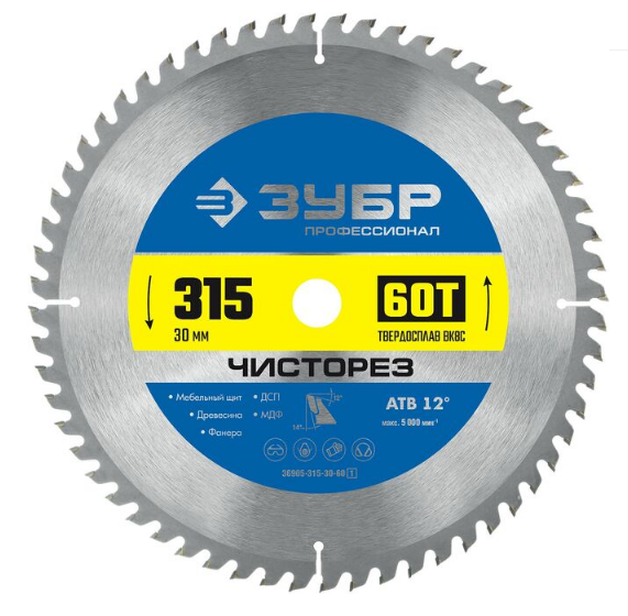 Пильный диск ЗУБР Чисторез, ⌀315 мм x 30 мм по дереву, 60T, 1 шт. (36905-315-30-60_z01)