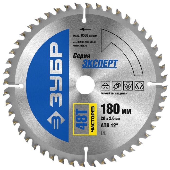 Пильный диск ЗУБР Эксперт, ⌀18 см x 2 см по дереву, чистый рез, 48Т, 1 шт. (36905-180-20-48)