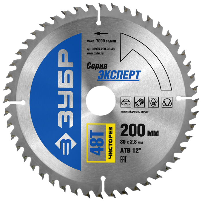 Пильный диск ЗУБР Эксперт, ⌀200 мм x 30 мм по дереву, быстрый рез, 48Т, 1 шт. (36905-200-30-48)