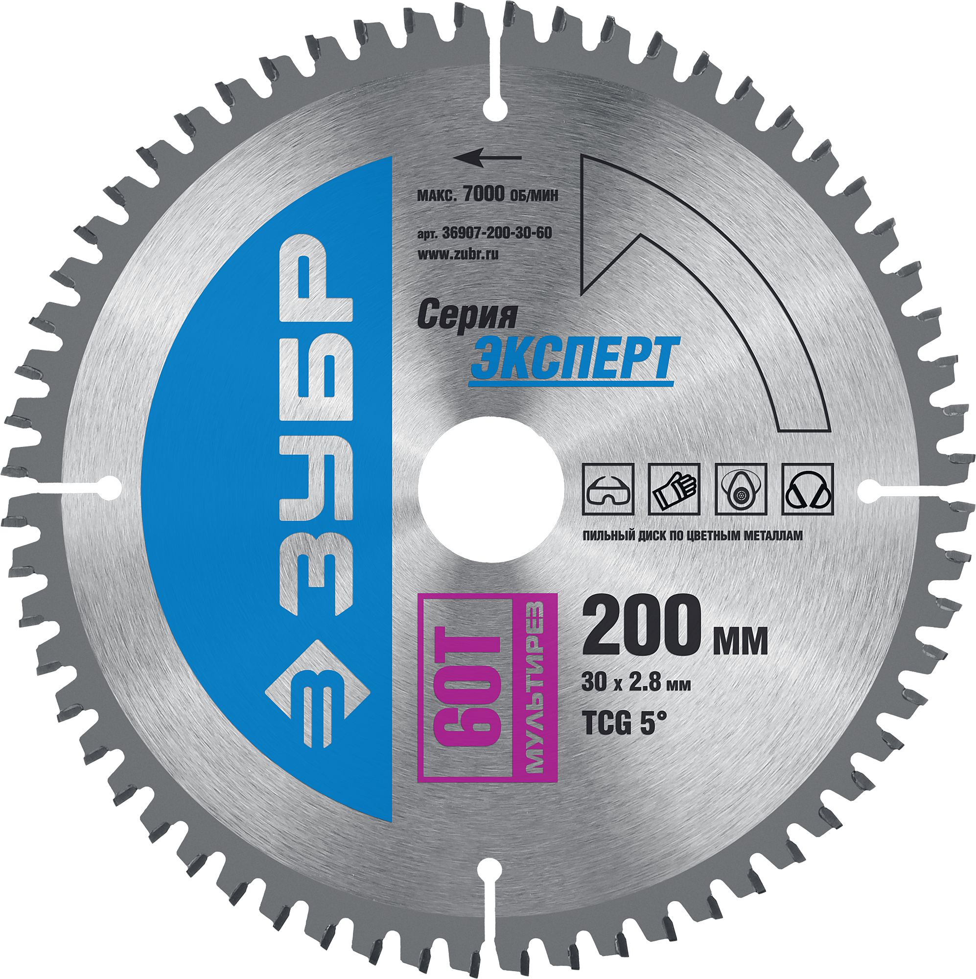 Пильный диск ЗУБР Эксперт, ⌀200 мм x 30 мм по дереву/металлу/пластику, чистый рез, 60T, 1 шт. (36907-200-30-60)