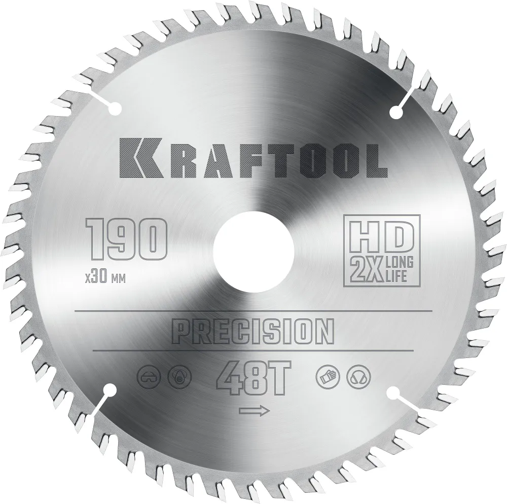 Пильный диск Kraftool Precission, ⌀190 мм x 30 мм по дереву, чистый и точный рез, 48Т, 1 шт. (36952-190-30)