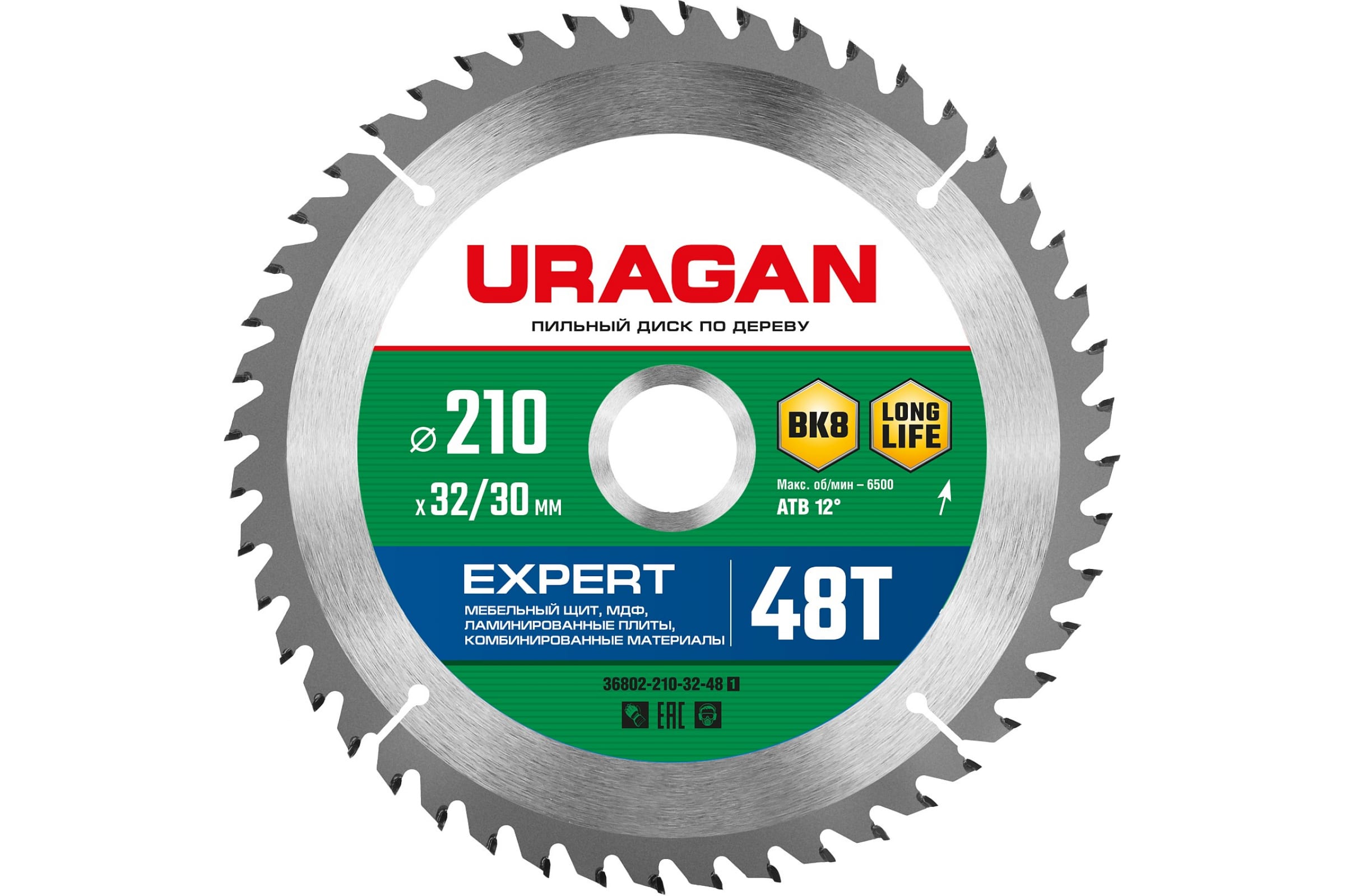 Пильный диск URAGAN Expert, ⌀210 мм x 30 мм по дереву, чистый рез, 48Т, 1 шт. (36802-210-32-48_z01)