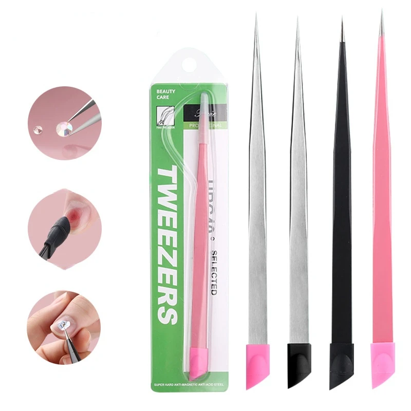 Пинцет с силиконовой насадкой Стразы для нанесения наклеек на ногти