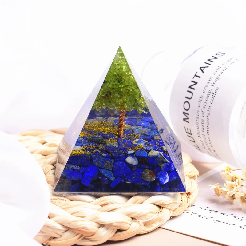 Пирамида из оргонита, перидот с кристаллом лазурита, кварц, рейки, исцеляющая энергия, оргонический элемент