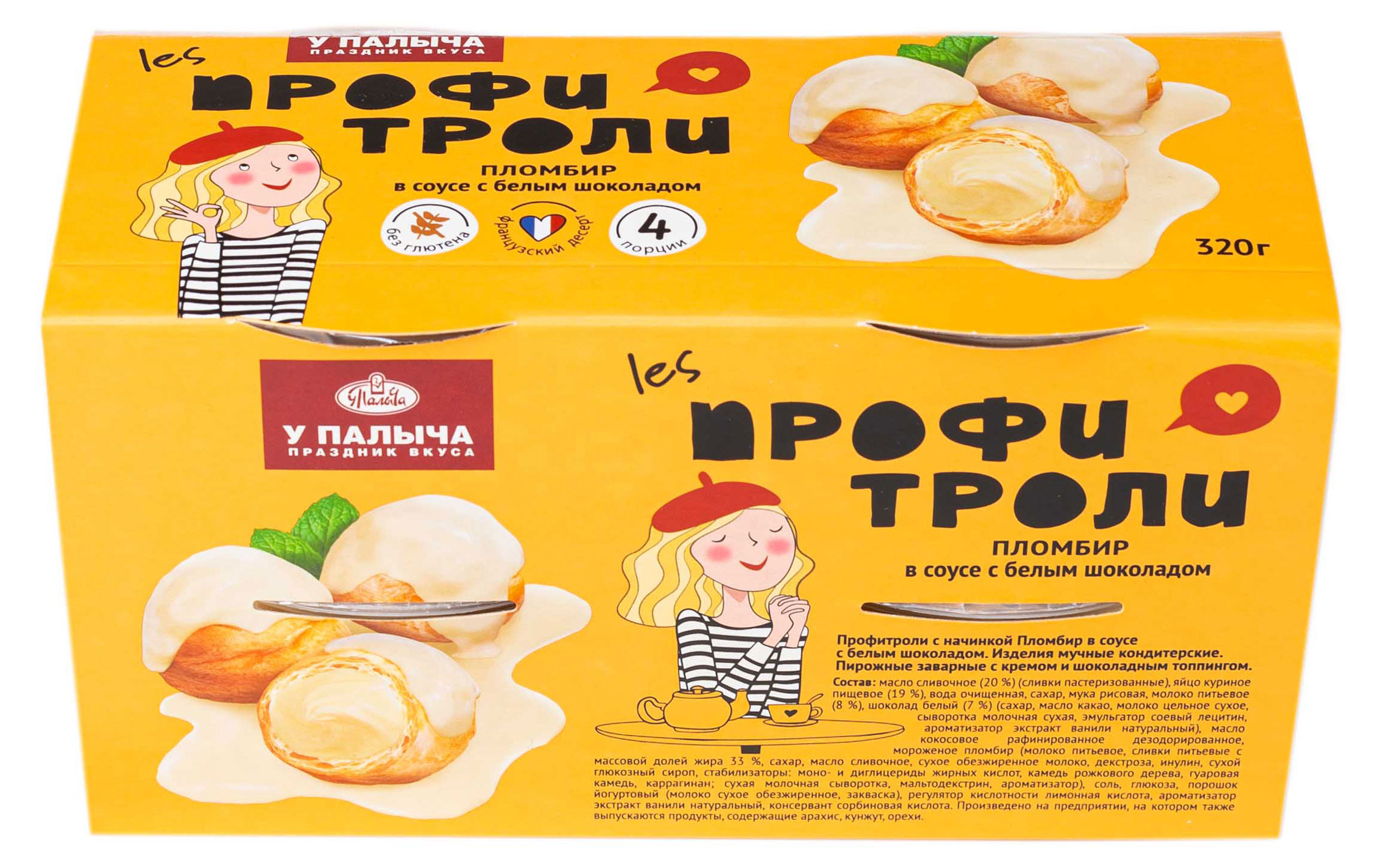 Пирожное У Палыча профитроли пломбир с белым шоколадом без глютена 4 порции, 320 г