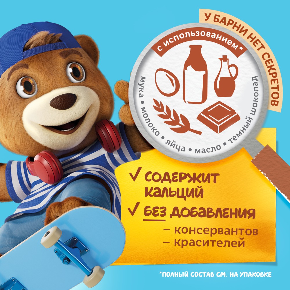 Пирожное бисквитное Медвежонок Барни Fun Sandwich с измельченным печеньем Oreo и с начинкой с кусочками темного шоколада, 180 г