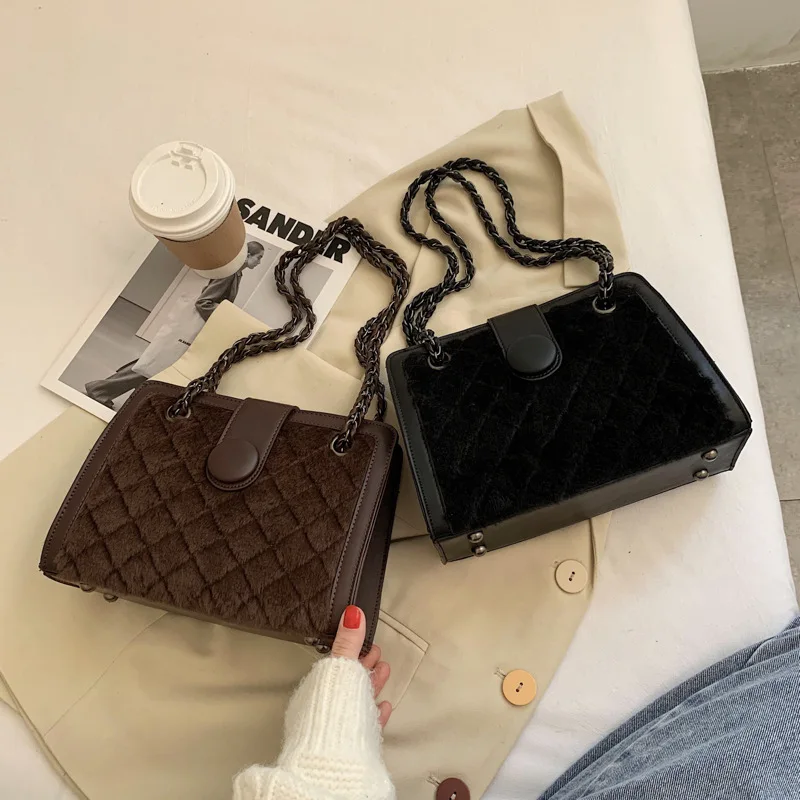 Net red plush bag women's 2020 new fashion versatile messenger bag autumn winter chain single shoulder armpit small square bag