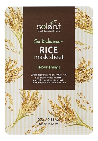 Питательная тканевая маска для лица с экстрактом риса So Delicious Rice Mask Sheet 25мл Soleaf — купить увлажняющие и питающие средства для кожи лица по доступной цене в интернет-магазине, смотреть фото и отзывы на Randewoo.ru