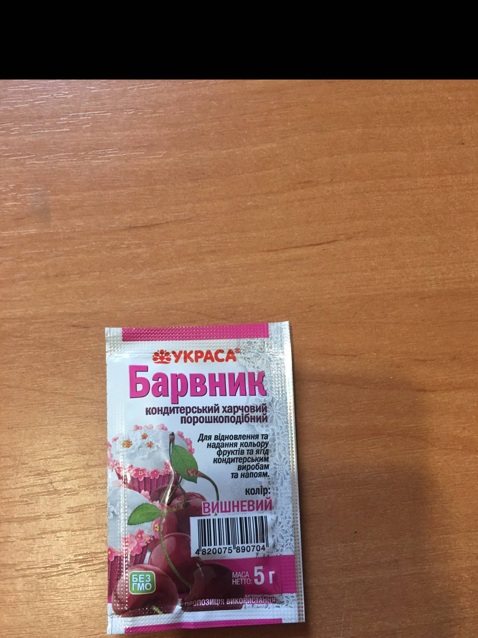 Пищевой краситель ТМ Украса 1шт - 5гр Применяется для придания цвета пищевым продуктам. Перед использованием краситель растворить в небольшом количестве воды. Содержимого пакета достаточно для придания насыщенного цвета до 20кг продукта. Дозировка: не более 0,5-2,5гр на 1кг готового продукта.