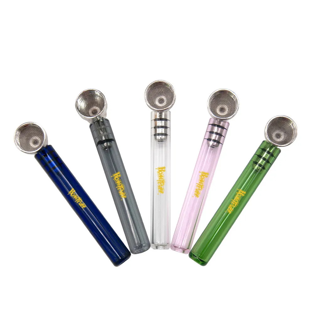 Smoke Shop Glass Smoke Pipe With Clear Handle 93MM With Metal Bowl Mini Style Glass Hand Spoon Pipes Tobacco Pipe Dab Tool Accessories