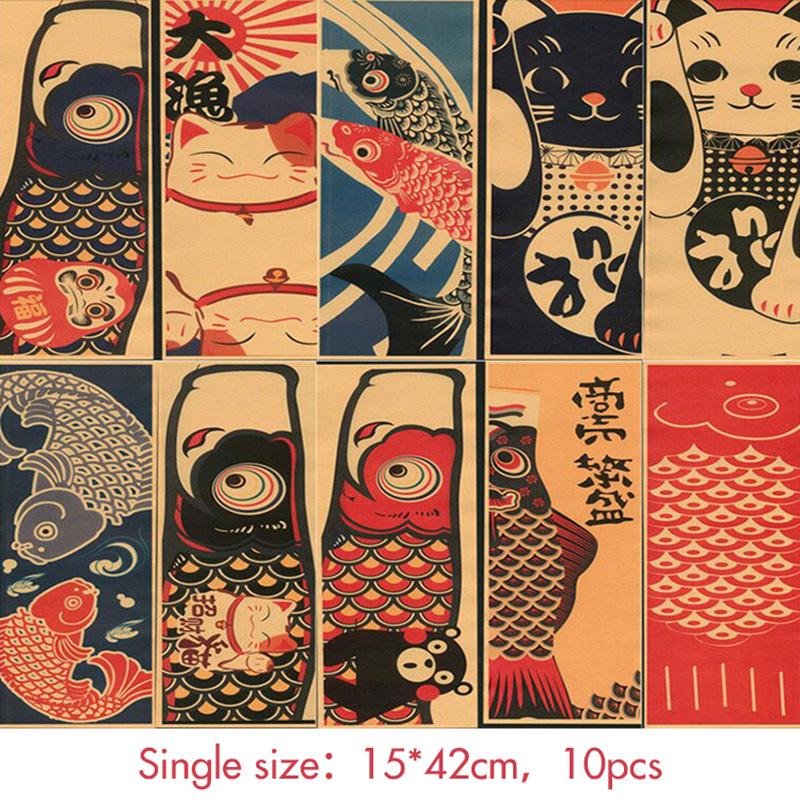 Плакаты в японском стиле Декор Укиё-э Живопись Японская еда Декор для суши-магазина Винные наклейки Обои Изакая Желтая крафт-бумага