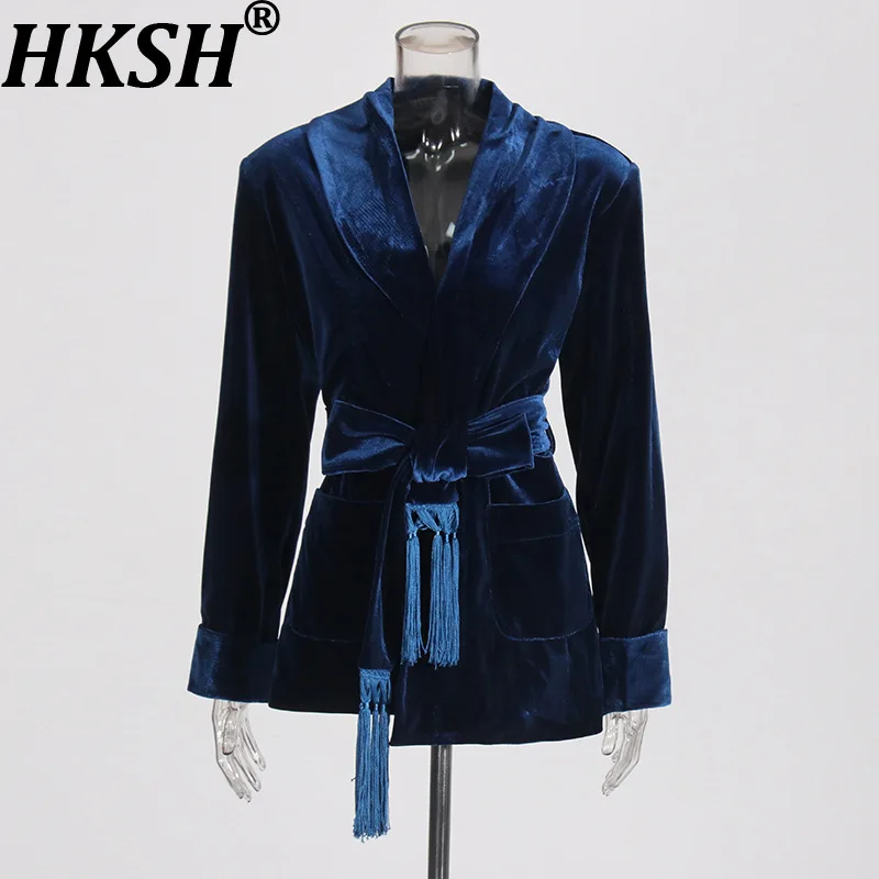 HKSH осенний новый женский пиджак сплошной цвет с карманами на поясе светский стиль элитный темпераментный стильный элегантный Ins пальто HK11495