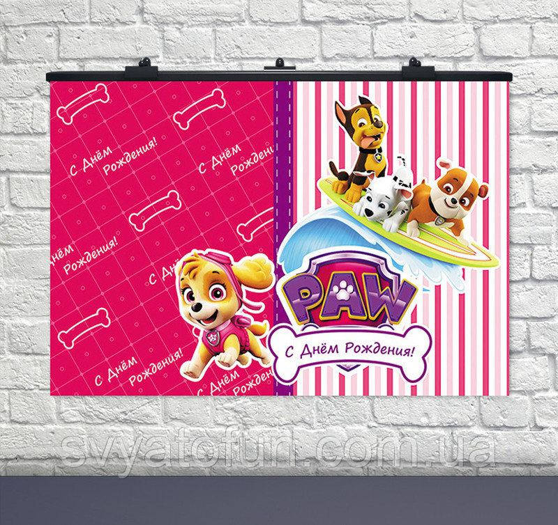 Плакат для праздника Щенячий патруль розовый 75×120см рус