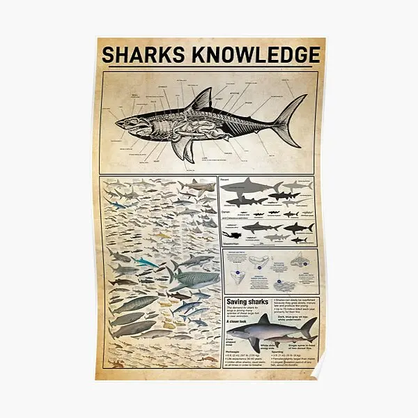 Плакат с знаниями акул, Настенный декор, забавная домашняя печать, украшение, современная картина, винтажная комната, искусство, роспись без рамки
