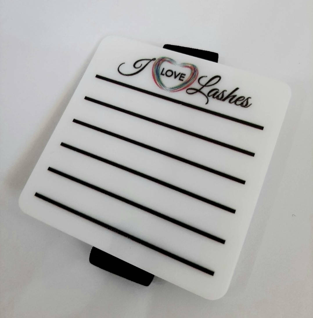 Планшет для ресниц - приспособление, позволяющее разместить и упорядочить ленты с накладными ресницами для более удобного и быстрого процесса наращивания. Данная модель оснащена резинкой для удобной и надежной фиксации изделия на руке.