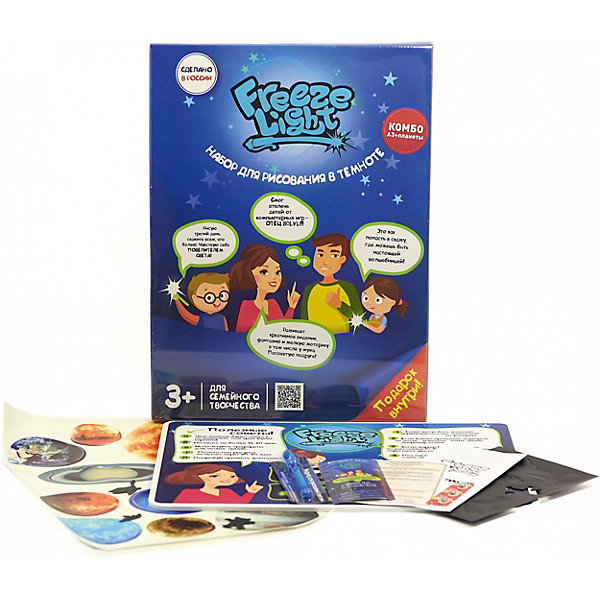 • в комплекте: световой планшет с наклейкой сзади, стандартный трафарет, трафарет буквы/цифры, инструкция с сертификатом, запасные батарейки, наклейки звёзды, маркер для рисования, наклейка «Солнечная система»