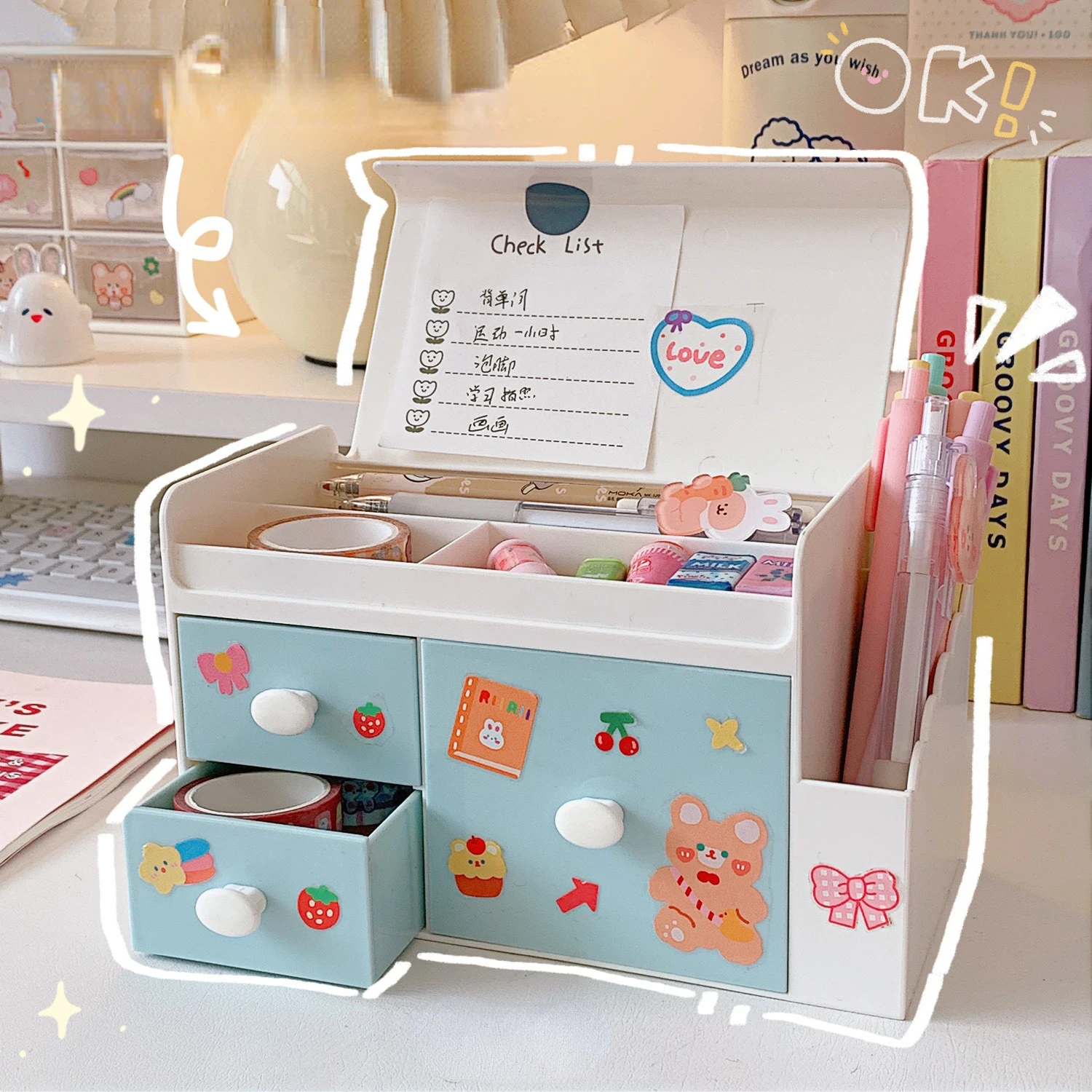 Пластиковая креативная Милая настольная коробка для хранения, ящик для офиса, домашней косметики, школьная коробка для хранения, ящик-Органайзер