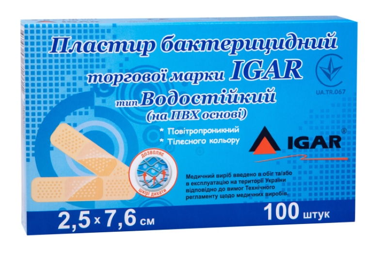 Бактерицидный пластырь торговой марки IGAR тип Водостойкий – медицинский стерильный лейкопластырь на ПВХ основе, телесного цвета. Воздухопроницаемый и влагостойкий, оказывает антисептическое действие. Незаметный на коже, удобный в применении. Предназначенный для закрытия незначительных царапин, порезов, ссадин, ран.