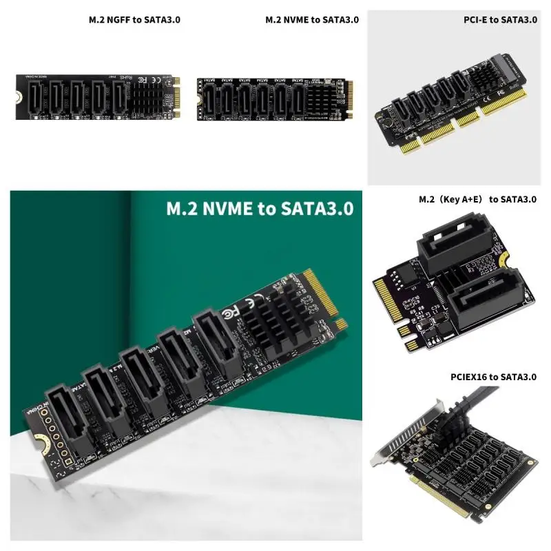 Плата адаптера M.2 на SATA 3,0 M.2 MKEY PCI-E, 1 шт., плата расширения с 5/6 портами, адаптер SATA3.0, NVME на SATA 6Gpbs, поддержка функции PM