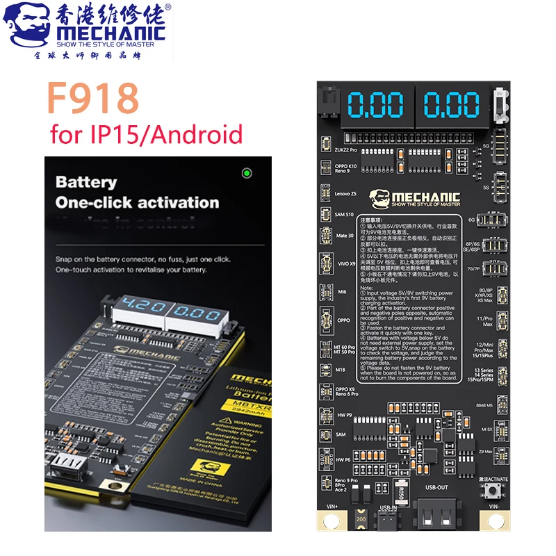Плата для активации аккумулятора MECHANIC F918 для IPhone 5G-15PM, серия Android для тестера зарядки печатных плат HuaWei/Samsung/Xiaomi