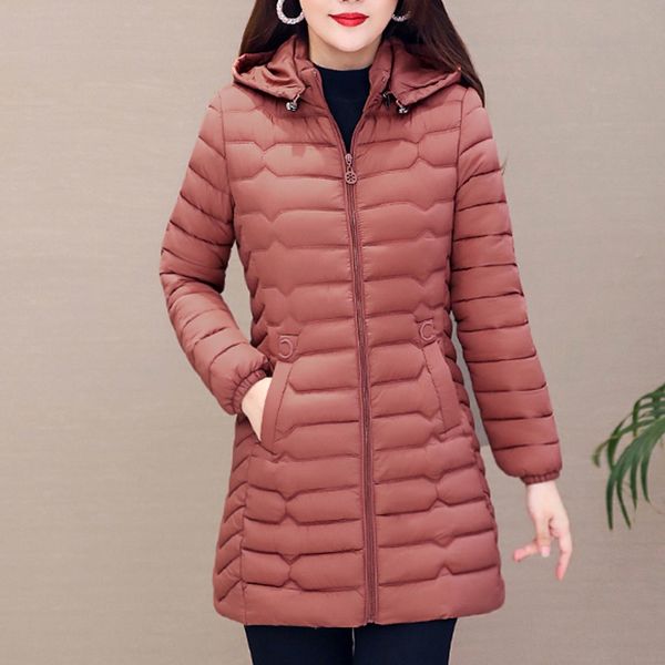 pockets warm casual coat parka jacket winter fashion casaco new outwear loose solid cotton zipper padded woman female women, Black