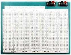 Плата состоит из 6-ти блоков основного поля,соединенных между собой пазами по 600 контактных точек каждый с интегрированными шинами питания по 1-й шине на 50 точек с двух сторон каждого блока.